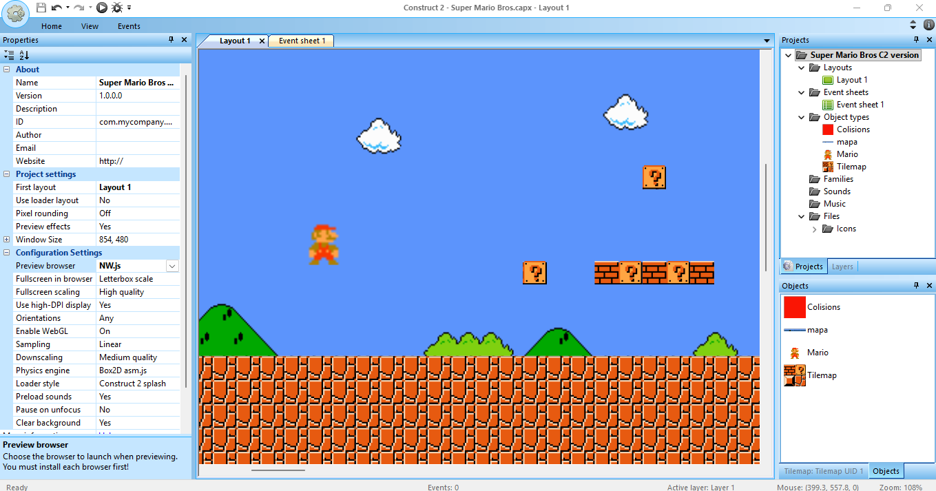 . no hay enemigos, no hay mas niveles , no hay power ups y ni se puede mover mario